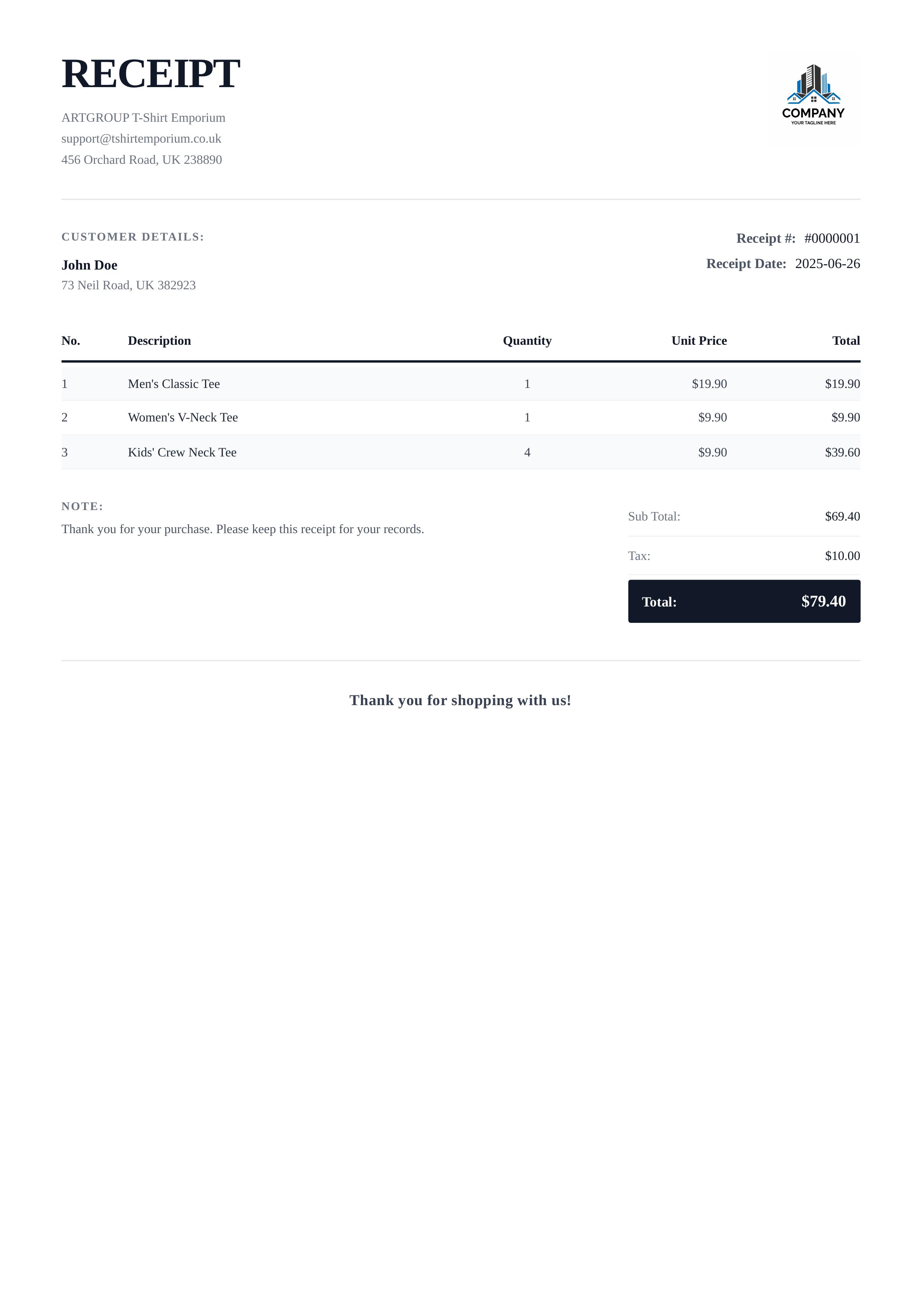 Receipts templates